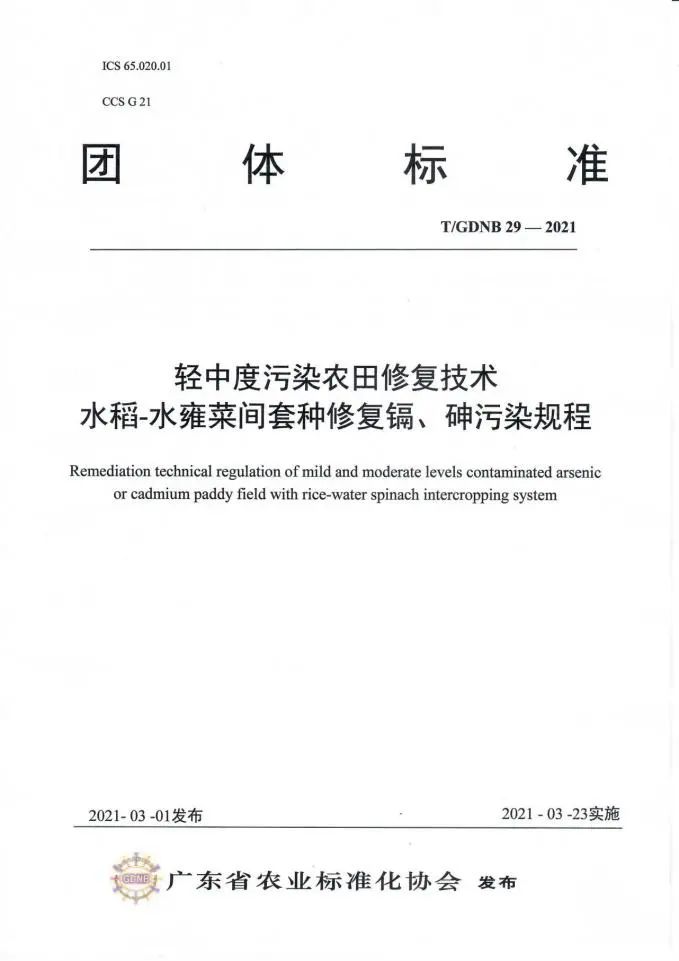 【CONGRATULATION】 喜 報(bào) 熱烈祝賀 我司參與制定的標(biāo)準(zhǔn) 頒布實(shí)施 我司與華南農(nóng)業(yè)大學(xué)資源環(huán)境學(xué)院、中國科學(xué)院地理科學(xué)與資源研究所等單位合作開展高低累積水稻品種間作修復(fù)鎘污染,水稻-水雍菜間套種修復(fù)鎘、砷污染,東南景天與蠶豆間作冬種修復(fù)鎘污染等研究工作,聯(lián)合起草了《輕中度污染農(nóng)田修復(fù)技術(shù) 高低累積水稻品種間作修復(fù)鎘污染規(guī)程》(T/GDNB28-2021)、《輕中度污染農(nóng)田修復(fù)技術(shù) 水稻-水雍菜間套種修復(fù)鎘、砷污染規(guī)程》(T/GDNB29-2021)、《輕中度污染農(nóng)田修復(fù)技術(shù) 東南景天與蠶豆間作冬種修復(fù)鎘污染規(guī)程》(T/GDNB30-2021),通過廣東省農(nóng)業(yè)標(biāo)準(zhǔn)化協(xié)會組織的標(biāo)準(zhǔn)審定并發(fā)布實(shí)施(2021年3月23日實(shí)施)。 廣東韶科環(huán)保科技有限公司 20121年4月9日
