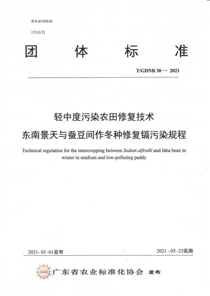 【CONGRATULATION】 喜 報(bào) 熱烈祝賀 我司參與制定的標(biāo)準(zhǔn) 頒布實(shí)施 我司與華南農(nóng)業(yè)大學(xué)資源環(huán)境學(xué)院、中國科學(xué)院地理科學(xué)與資源研究所等單位合作開展高低累積水稻品種間作修復(fù)鎘污染,水稻-水雍菜間套種修復(fù)鎘、砷污染,東南景天與蠶豆間作冬種修復(fù)鎘污染等研究工作,聯(lián)合起草了《輕中度污染農(nóng)田修復(fù)技術(shù) 高低累積水稻品種間作修復(fù)鎘污染規(guī)程》(T/GDNB28-2021)、《輕中度污染農(nóng)田修復(fù)技術(shù) 水稻-水雍菜間套種修復(fù)鎘、砷污染規(guī)程》(T/GDNB29-2021)、《輕中度污染農(nóng)田修復(fù)技術(shù) 東南景天與蠶豆間作冬種修復(fù)鎘污染規(guī)程》(T/GDNB30-2021),通過廣東省農(nóng)業(yè)標(biāo)準(zhǔn)化協(xié)會組織的標(biāo)準(zhǔn)審定并發(fā)布實(shí)施(2021年3月23日實(shí)施)。 廣東韶科環(huán)保科技有限公司 20121年4月9日